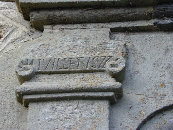 Logis, porte principale, pilastre portant la date juillet 1577 : détailImmatriculation