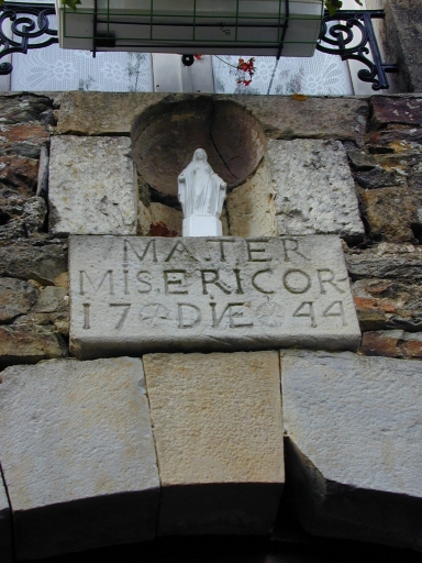 Façade antérieure, pierre de tuffeau portant l'inscription dédicatoire : détailImmatriculation