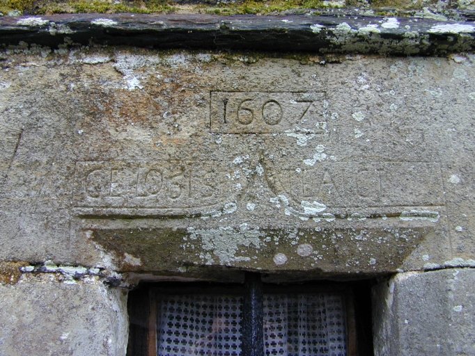 Façade antérieure, jour de la salle : détail des inscriptionsImmatriculation