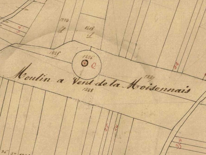 Le moulin à vent de la Moissonnais sur le cadastre de 1831Immatriculation