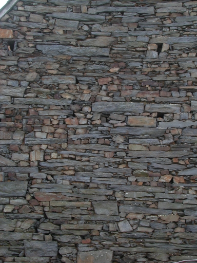 Détail ; pignon nord en moellons de schisteImmatriculation