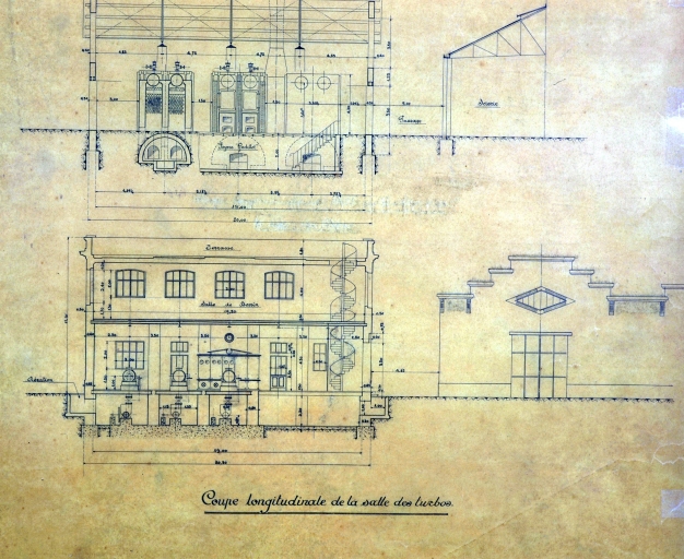 Salle des turbos, coupe longitudinale (1918).Immatriculation
