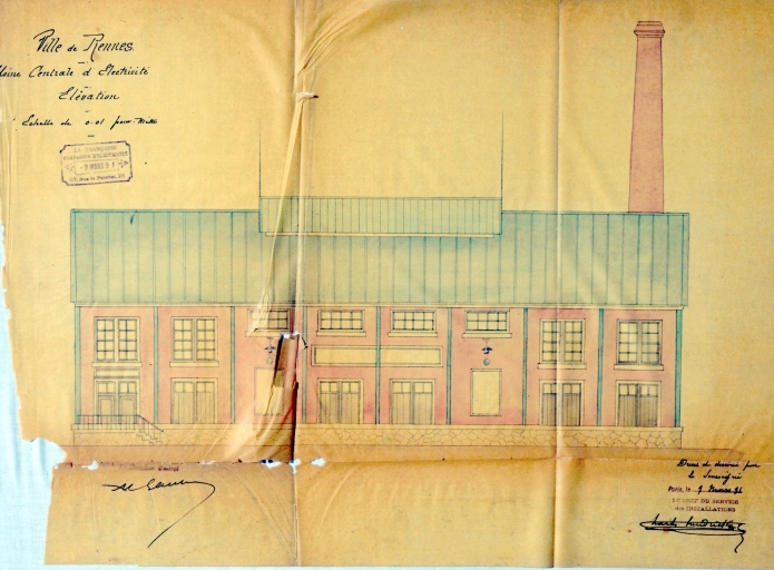 Usine centrale d'électricité, élévation (1891).Immatriculation