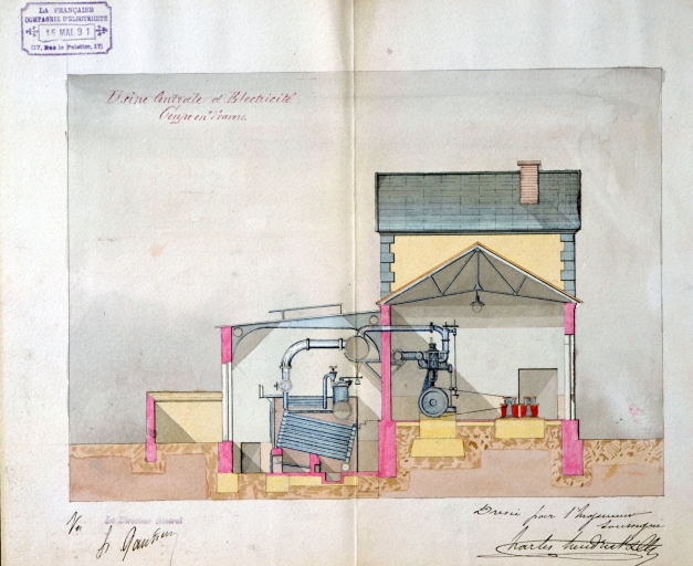 Usine centrale d'électricité, coupe transversale (1891)Immatriculation