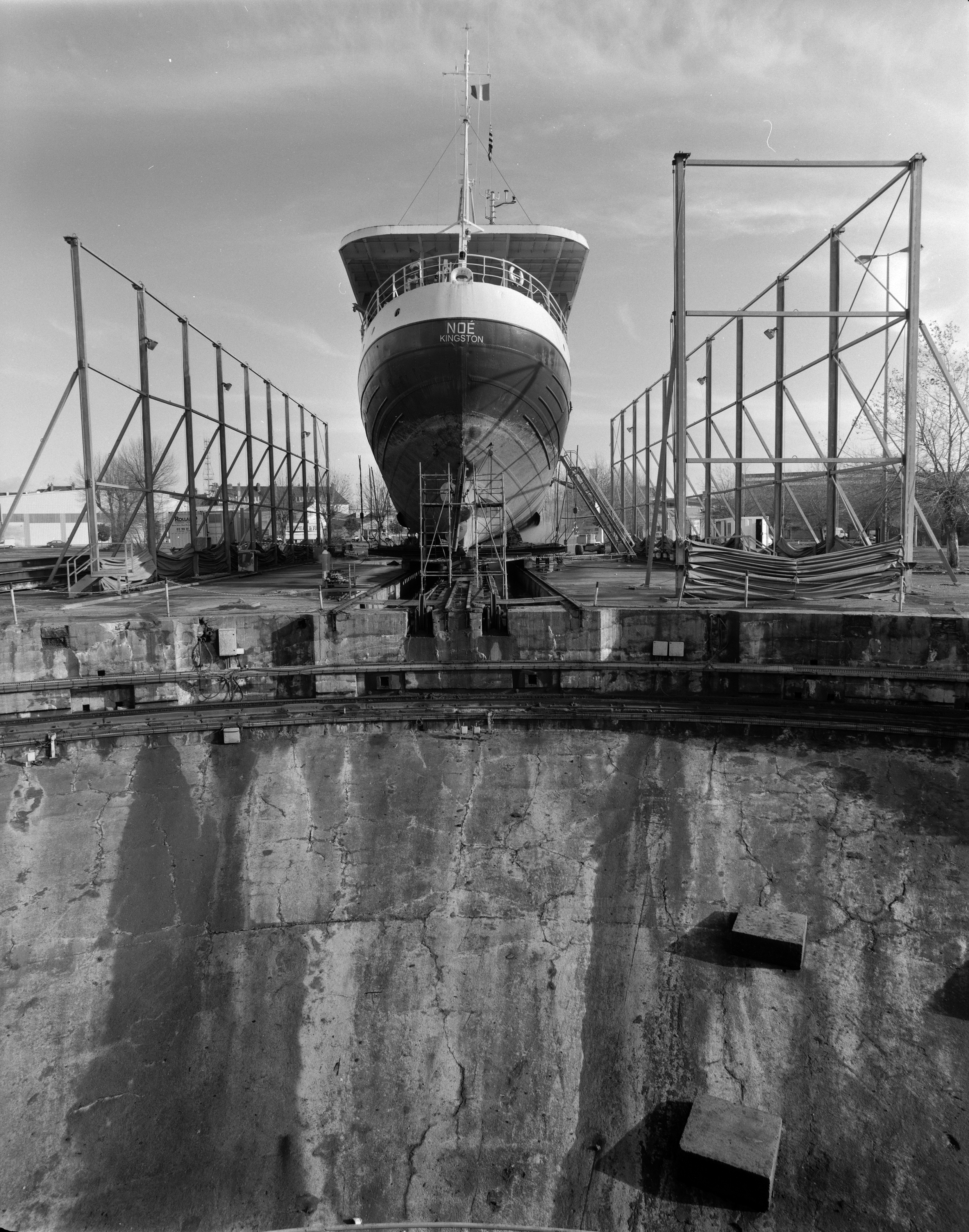 Vue de la deuxième ligne de réparation navale en 2000 : ancien baleinier norvégien de 61 m baptisé Noé (Kingston)Immatriculation