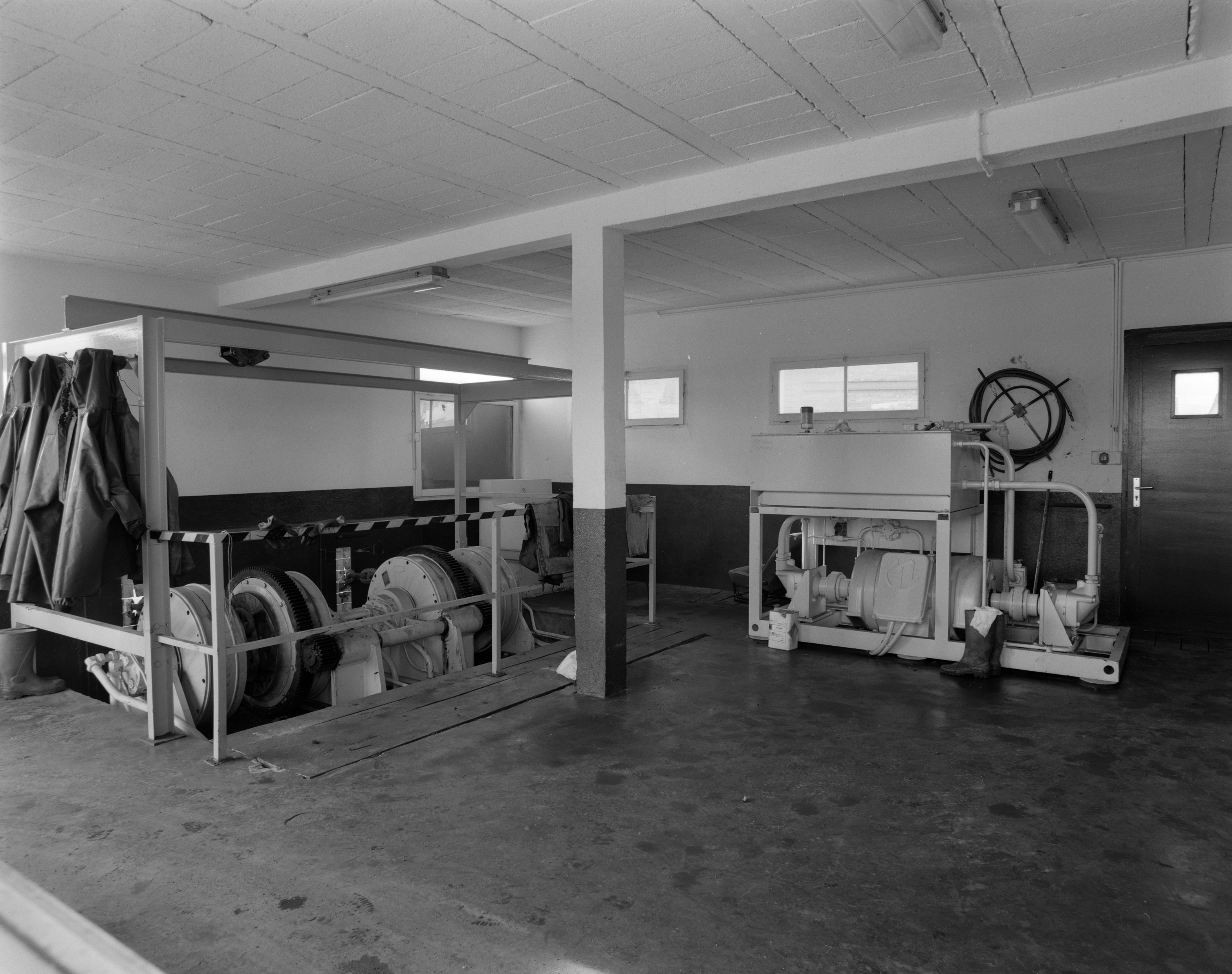 Vue du treuil de hissage de la quatrième ligne de réparation en 2000. Il s'agissait d'un treuil à chaîne à deux tamboursImmatriculation