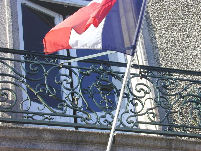 Elévation nord, balcon avec initiales T SImmatriculation