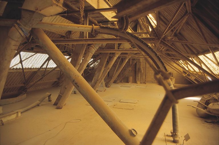 Vue intérieure des silos, partie supérieure.Immatriculation