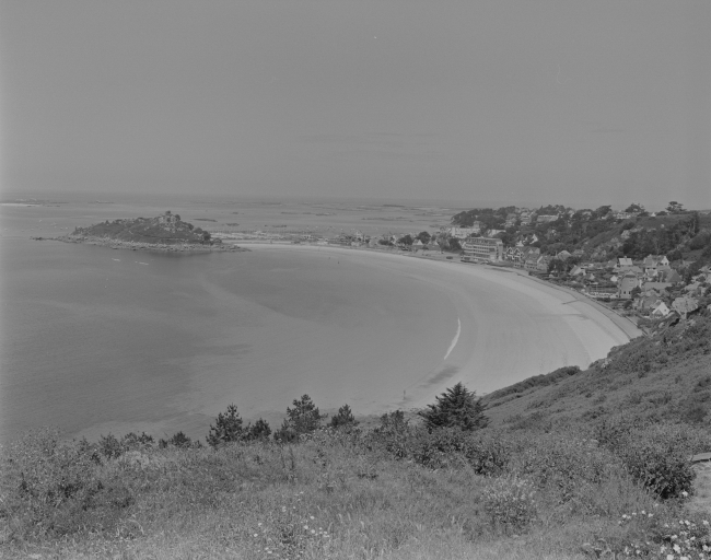 Vue d'ensemble de plage de Tresmeur, vers le nord, depuis la presqu'ile de BihitImmatriculation
