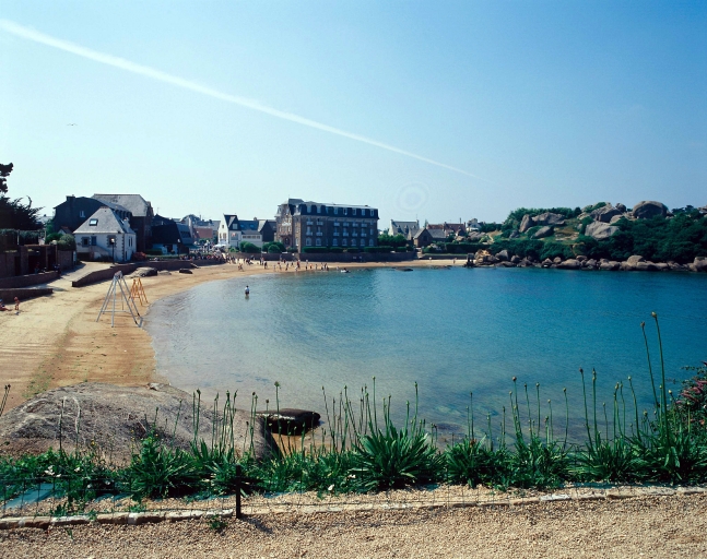 Vue d'ensemble de la plage saint-Guirec de Ploumanac'h vers l'hôtel BeausiteImmatriculation