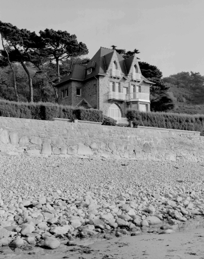 Trébeurden : maison dite Mer et Falaise (rue du Traou Meur), édifiée en 1928 par l'architecte James Bouillé : vue d'ensemble.Immatriculation