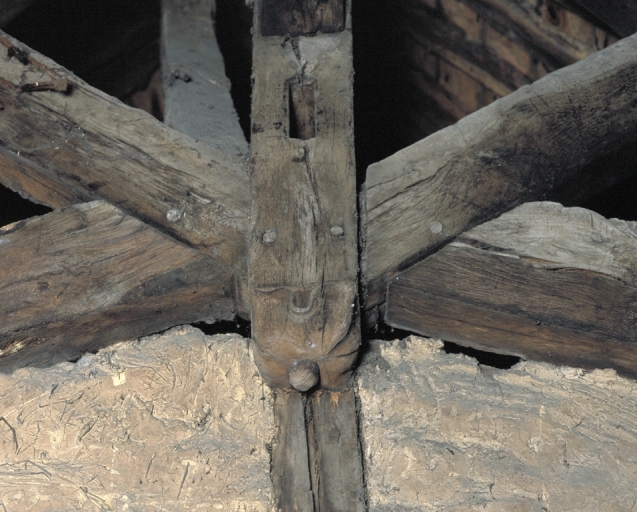 Etage de comble, partie ouest, détail d'un poinçon de la charpenteImmatriculation