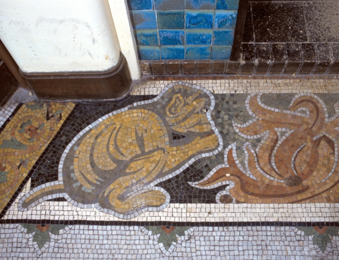 Détail sur le tapis de mosaique de la cheminée du hall, partie gaucheImmatriculation