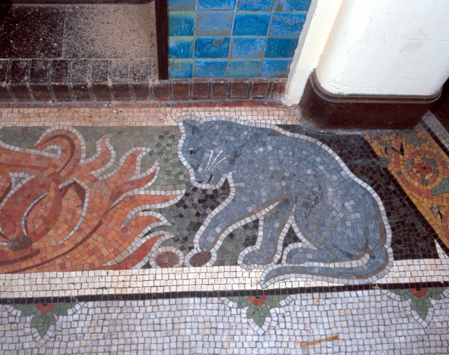 Détail sur le tapis de mosaique de la cheminée du hall, partie droiteImmatriculation