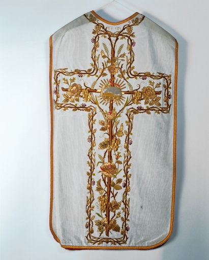 Ornement blanc 4 : chasuble, bourse de corporal, étole, voile de calice (Guipry fusionnée en Guipry-Messac en 2016),