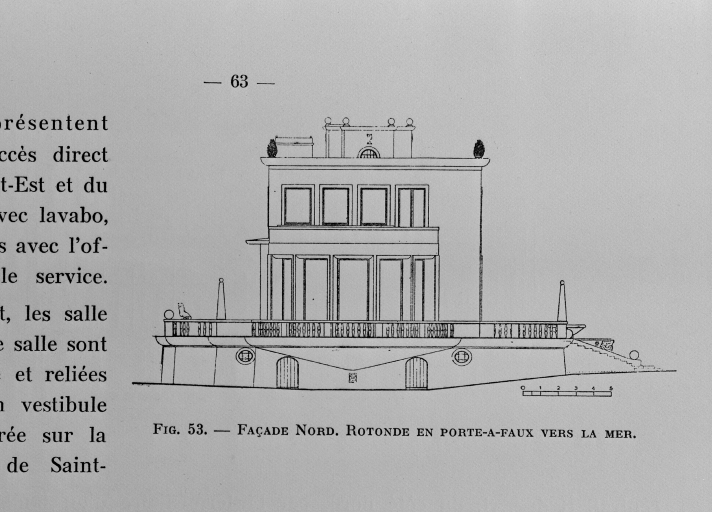 Plan de la façade nord. Rotonde en porte-à-faux vers la mer.Immatriculation