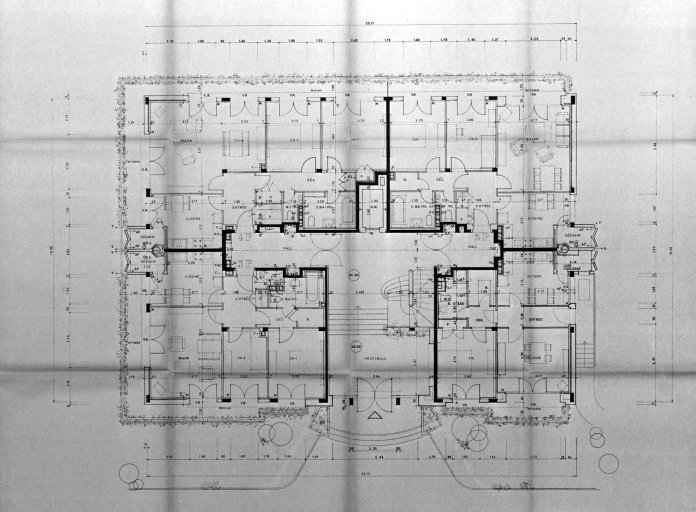 Immeuble A : plan du rez-de-chaussée, par Jean-Gérard Carré, 1967 (A. C. Rennes)Immatriculation