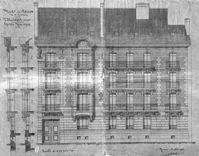 Elévation, dessin par Georges Nitsch, 1908 (A. C. Rennes)Immatriculation