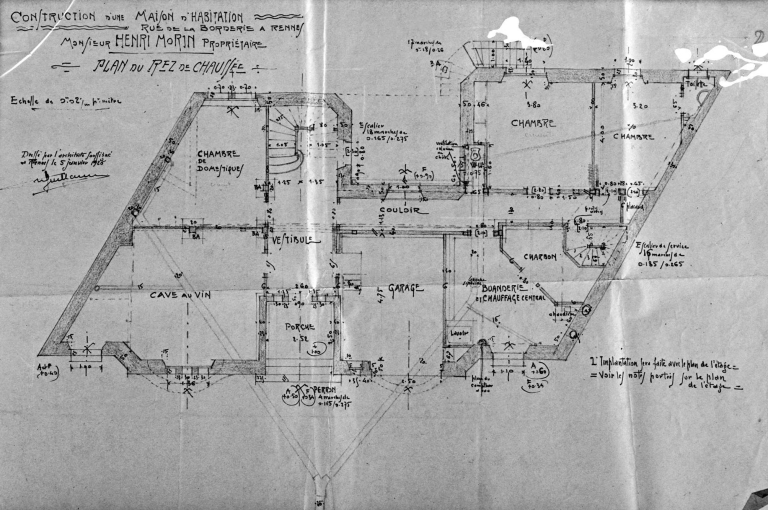 Plan du rez-de-chaussée, par Eugène Guillaume, 5 janvier 1926 (A. C. Rennes)Immatriculation