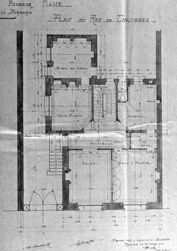 Plan du rez-de-chaussée, Rallé, 1910 (A. C. Rennes)Immatriculation