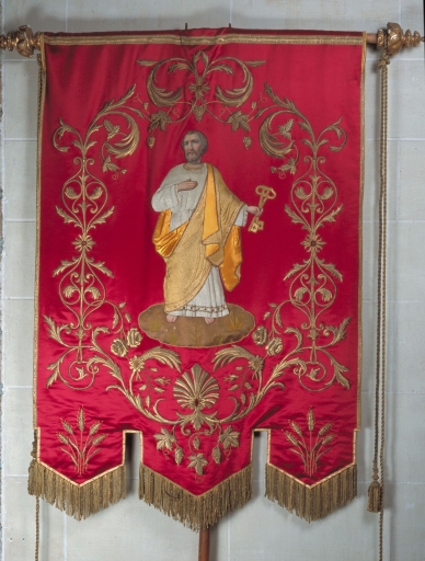 Bannière de procession paroissiale : Assomption, saint Pierre,
