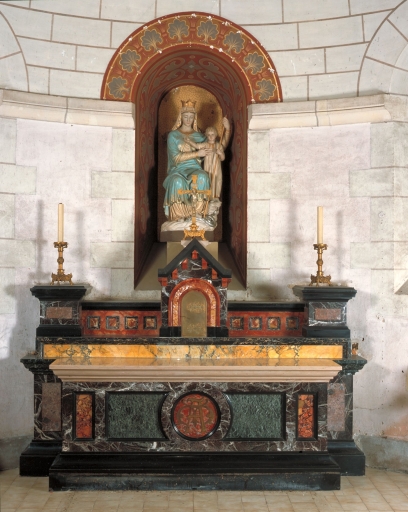 Ensemble de l'autel de la Vierge : autel, degré d'autel, 2 gradins d'autel, tabernacle,