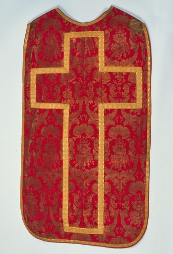 Ornement rouge 2 : chasuble, bourse du corporal, étole, manipule, voile de calice,