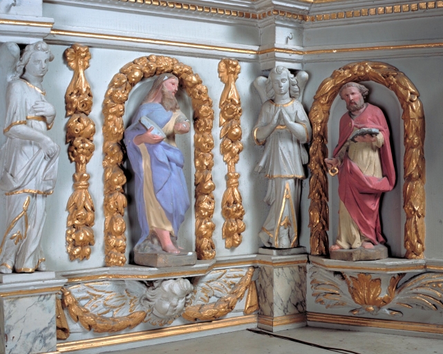 Ensemble du maître-autel : autel, tabernacle, retable, gradin d'autel, 3 degrés d'autel,
