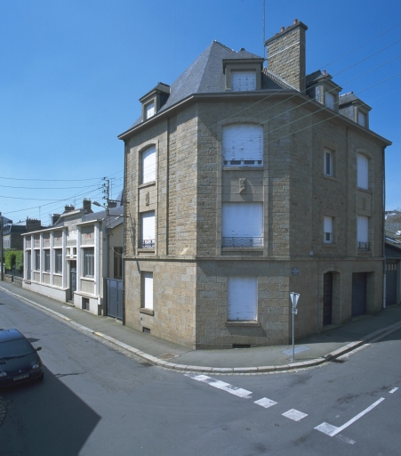 Vue générale sud : l'usine et le logement patronal à pan coupé, à l'angle.Immatriculation