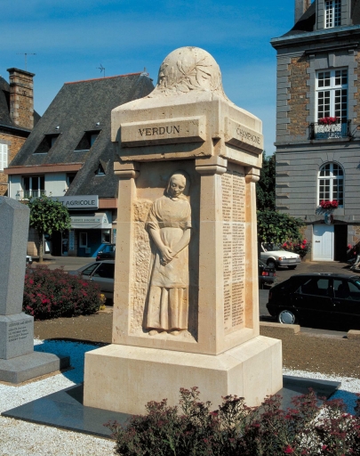 Vue de trois-quart sud-est : détail de la sculpture, femme en deuilImmatriculation