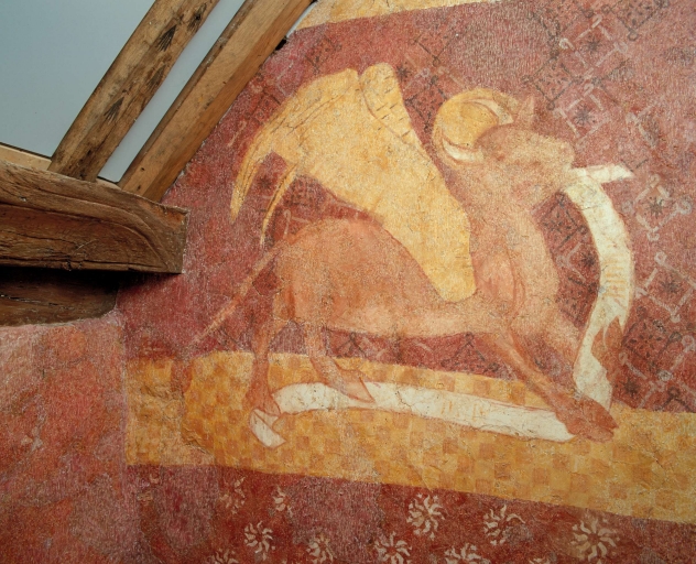 Sacristie, mur est, à gauche de la fenêtre : boeuf symbolisant saint LucImmatriculation