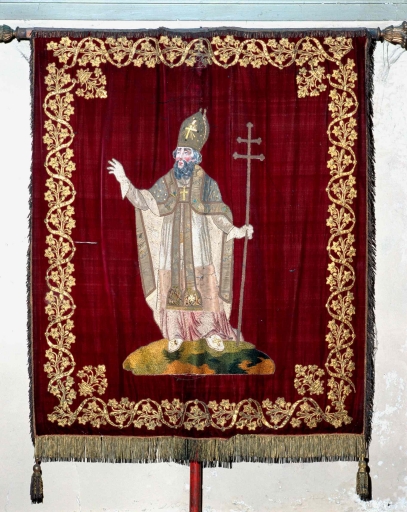 Bannière de procession paroissiale : saint Martin, Christ en croix,