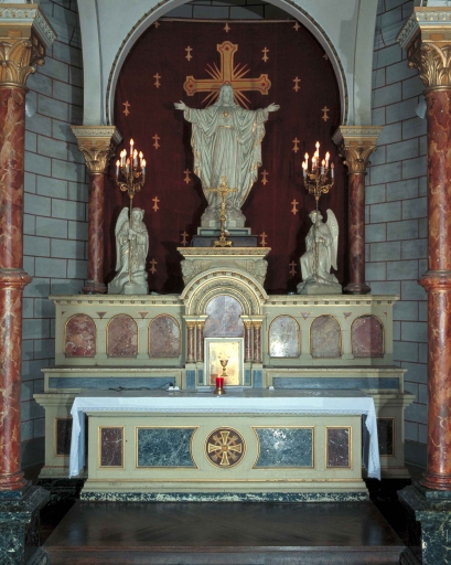 Ensemble de 3 statues : Sacré Coeur et 2 anges adorateurs,