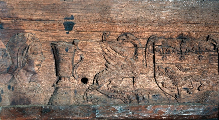 Vue intérieure, bas-relief en remploi : détailImmatriculation