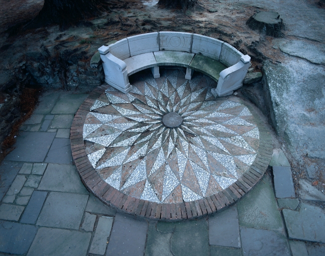 Banc et pavement en rosace.Immatriculation