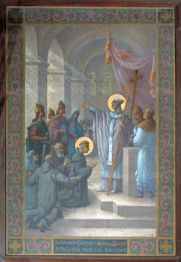 Ensemble de 7 tableaux : Vie de saint Melaine,