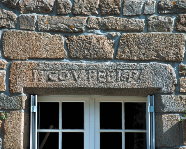 Porte du logis ouest avec un linteau épigraphique : vue générale sudImmatriculation
