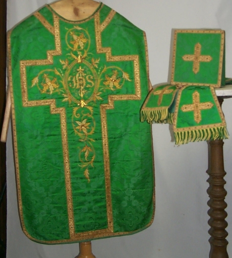 Ornement vert 1 : chasuble, bourse de corporal, étole, manipule (Guipry fusionnée en Guipry-Messac en 2016),