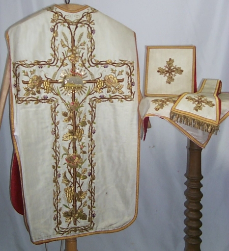Ornement blanc 4 : chasuble, bourse de corporal, étole, voile de calice (Guipry fusionnée en Guipry-Messac en 2016),
