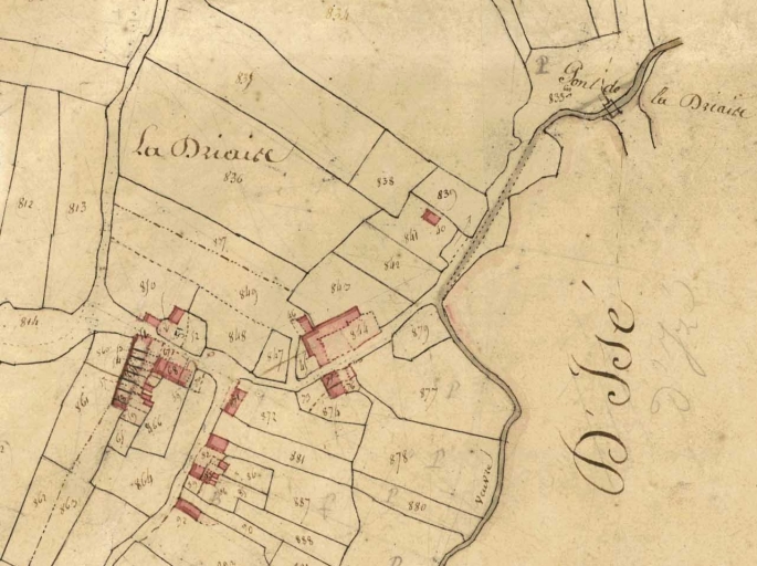 La ferme sur le cadastre de 1827 ; alignement à gauche sur l'imageImmatriculation