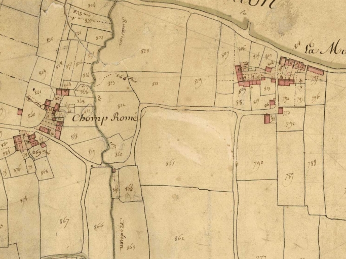 La Morinais en 1827 sur le cadastre napoléonien ; à droite sur l'image, parcelles 807-809Immatriculation
