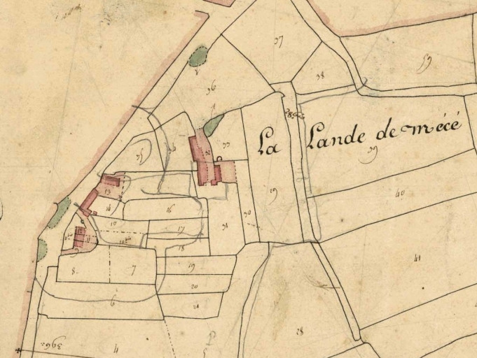 La ferme en 1827 sur le cadastre napoléonien ; ouvrage parcelle 14Immatriculation