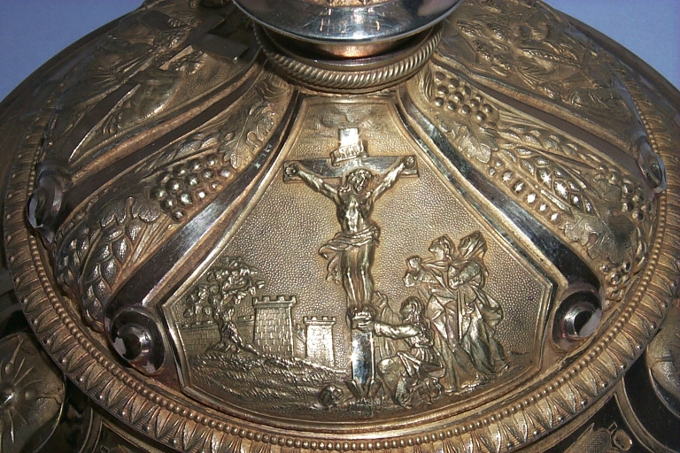 Détail du décor du pied : CalvaireImmatriculation