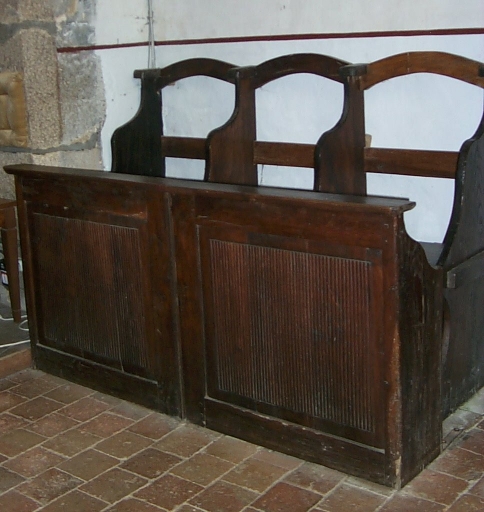 Ensemble de 5 bancs d'église et 3 fausses stalles,