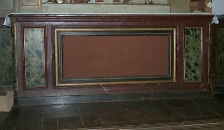Ensemble de l'autel du Rosaire : autel, retable, 2 gradins d'autel, 2 degrés d'autel,