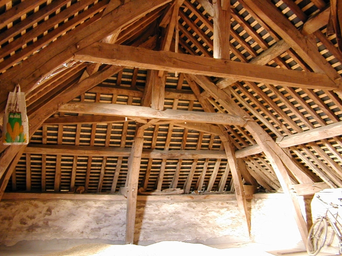 Détail : la charpente à croupe du logis, limite 19e siècle 20e siècleImmatriculation
