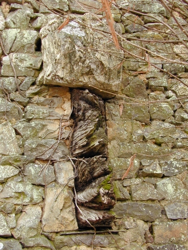 La Rousselais : corbeau de cheminée en bois protégé par un bloc de quartziteImmatriculation