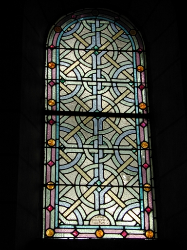 Ensemble des verrières de la nef (baies 5, 7 à 15, 109 à 123) : 24 verrières décoratives,