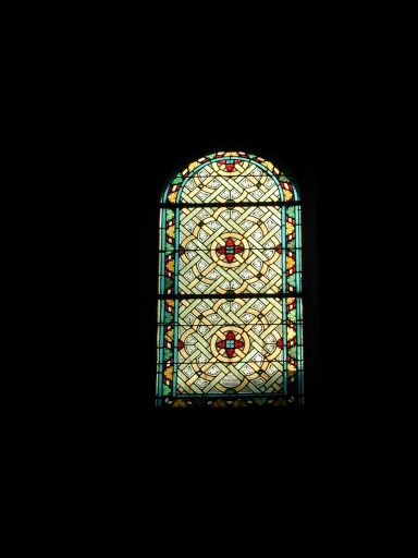 Ensemble des verrières de la nef (baies 5, 7 à 15, 109 à 123) : 24 verrières décoratives,