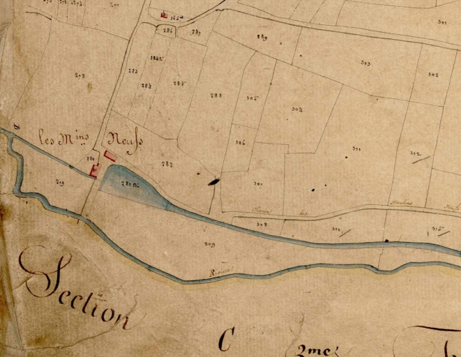 Le moulin et ses dépendances sur le cadastre de 1826Immatriculation